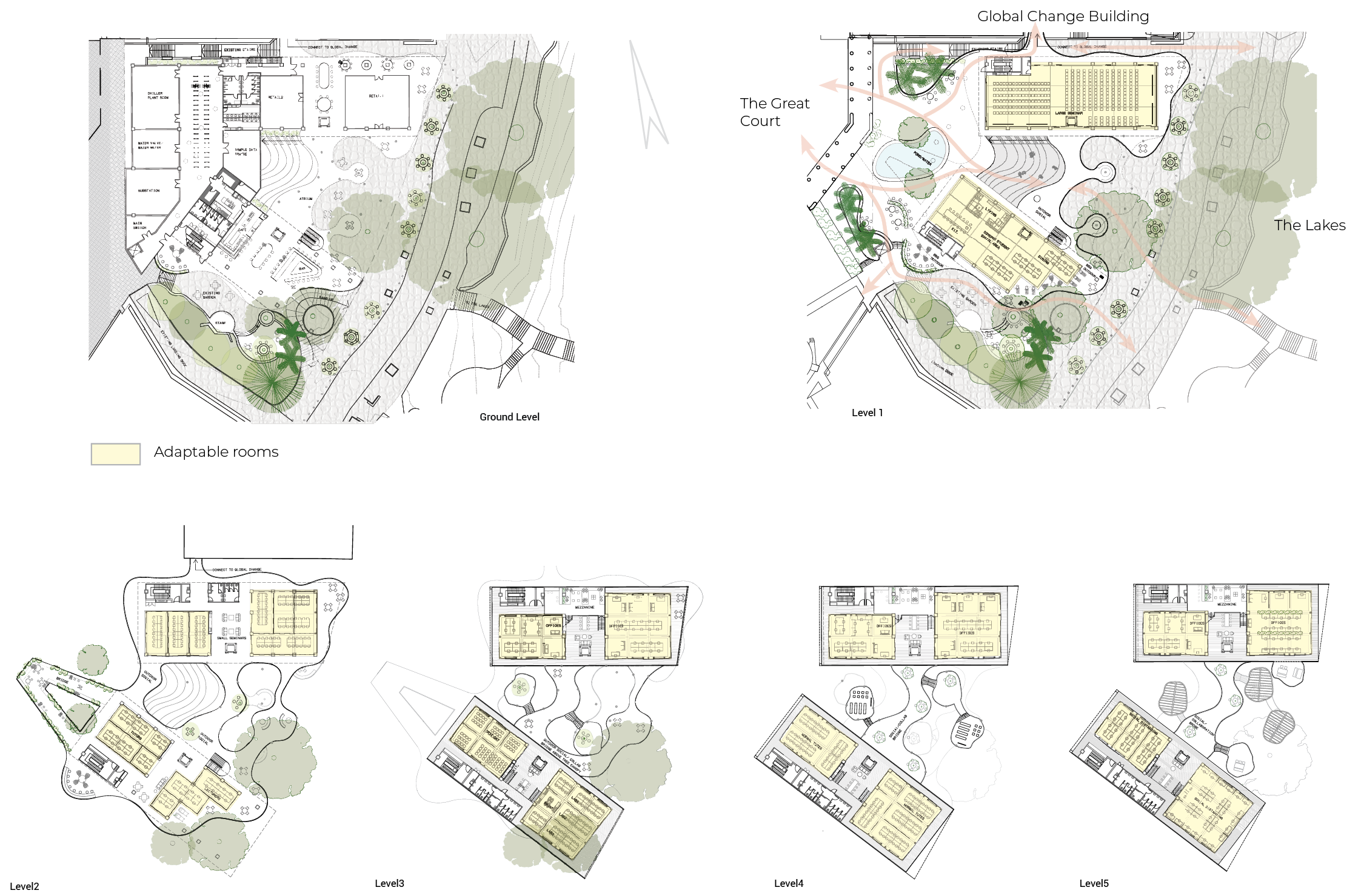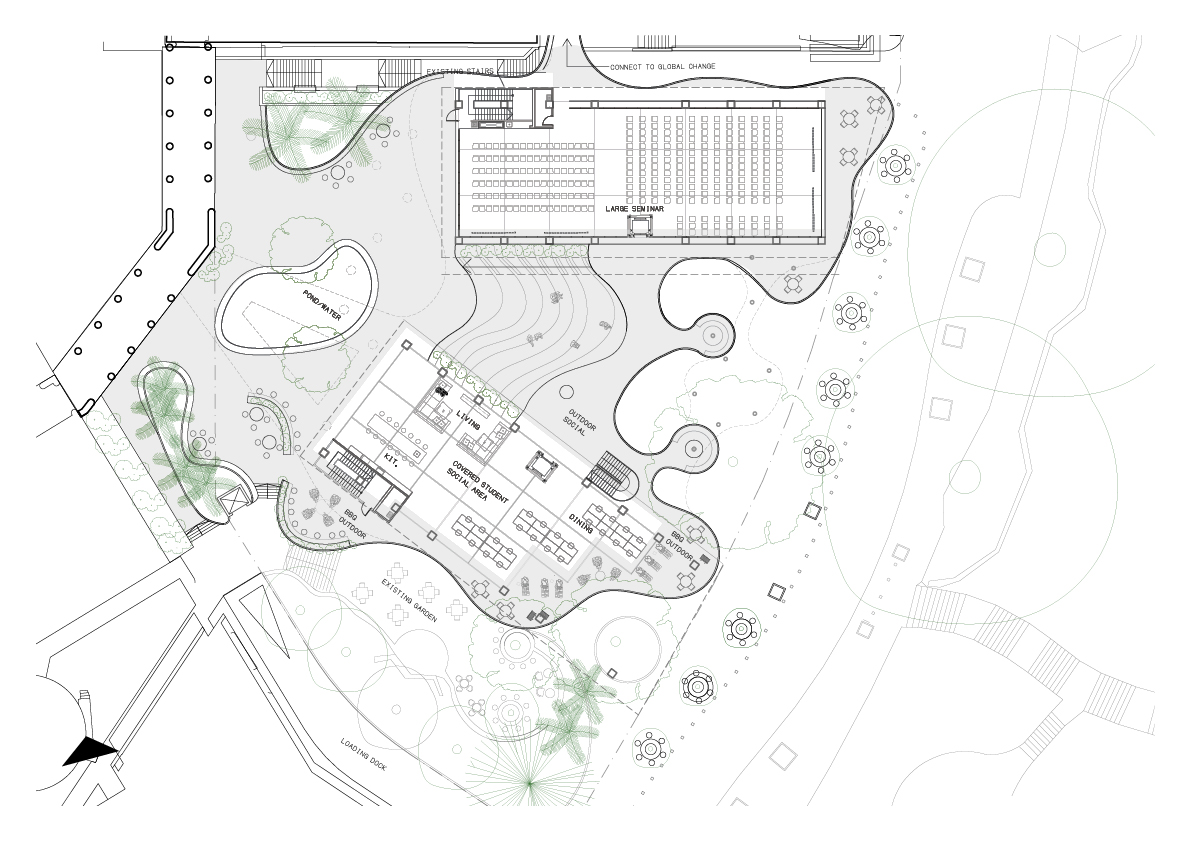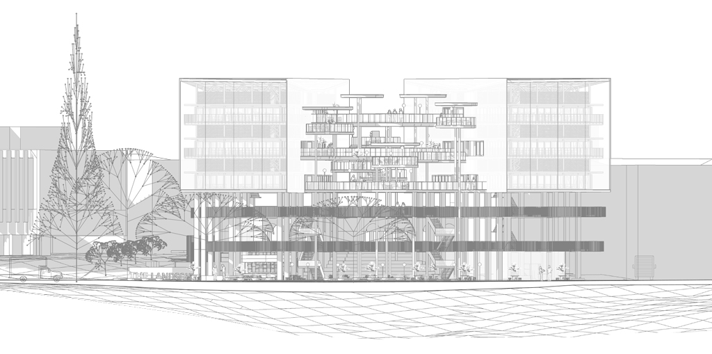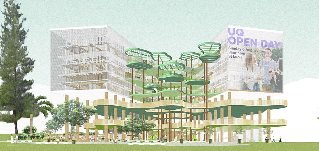 A proposed general-purpose building at the University of Queensland (UQ) is designed to accommodate postgraduates while meeting the diverse needs of students, staff, visitors, and neighboring communities, extending to the city center.