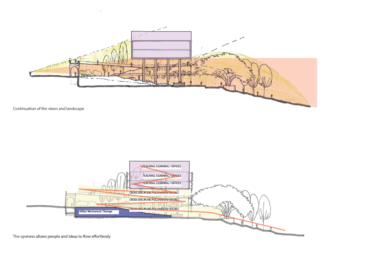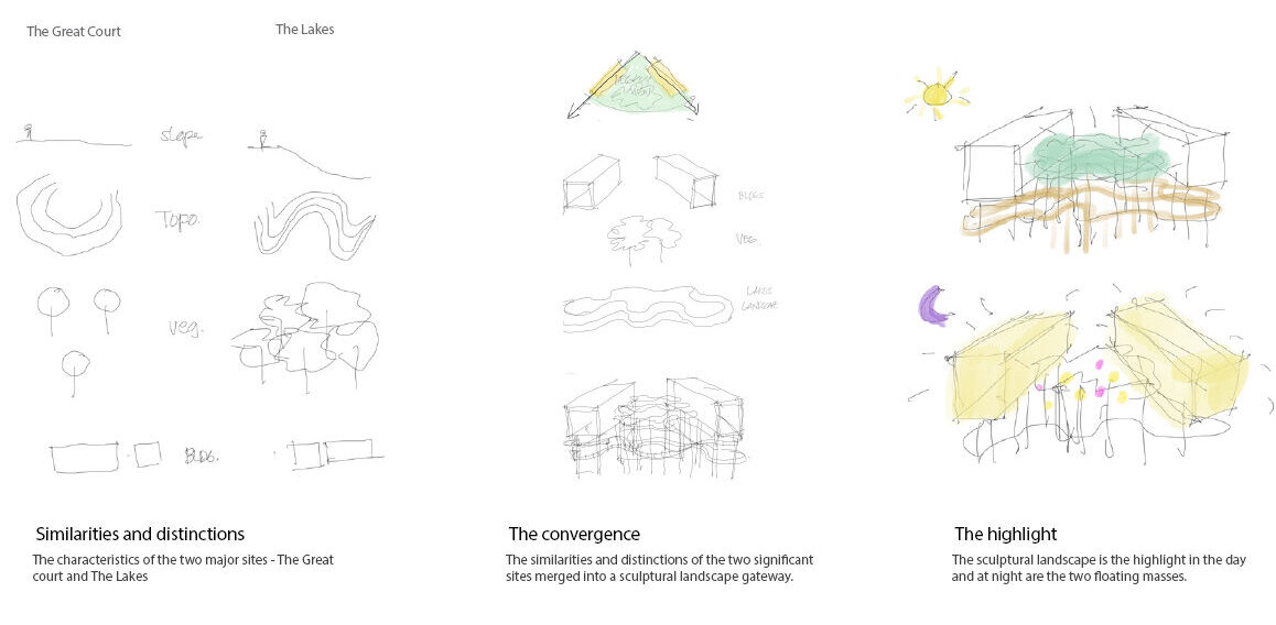 This project honors UQ’s original Hennessy legacy view, preserving vistas and landscapes from the Great Court to the five colonnades. By blending the contrasting features of these two key sites—the formality of The Great Court and the natural beauty of The Lakes—the new building becomes a gateway, seamlessly connecting the two realms through a sculptural landscape designed for outdoor learning, collaboration, work, and socialisation.