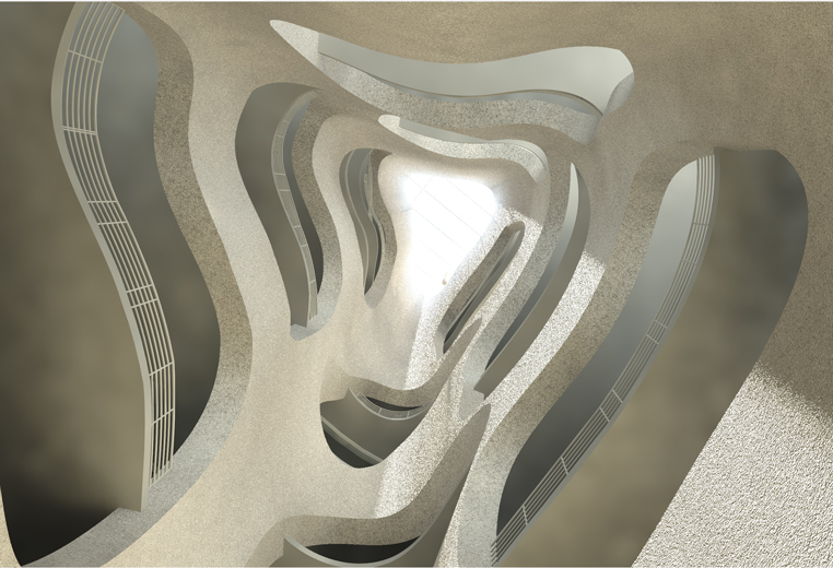 Inspired by materiality, rhythm, and the orchestration of voids, the design draws on three key characteristics of Studio Gang as its conceptual generator. It merges the heavy, sculpted concrete massing of the Richard Gilder Centre with the lightness and transparency of the O’Hare Global Terminal, forming a hybrid structural expression.